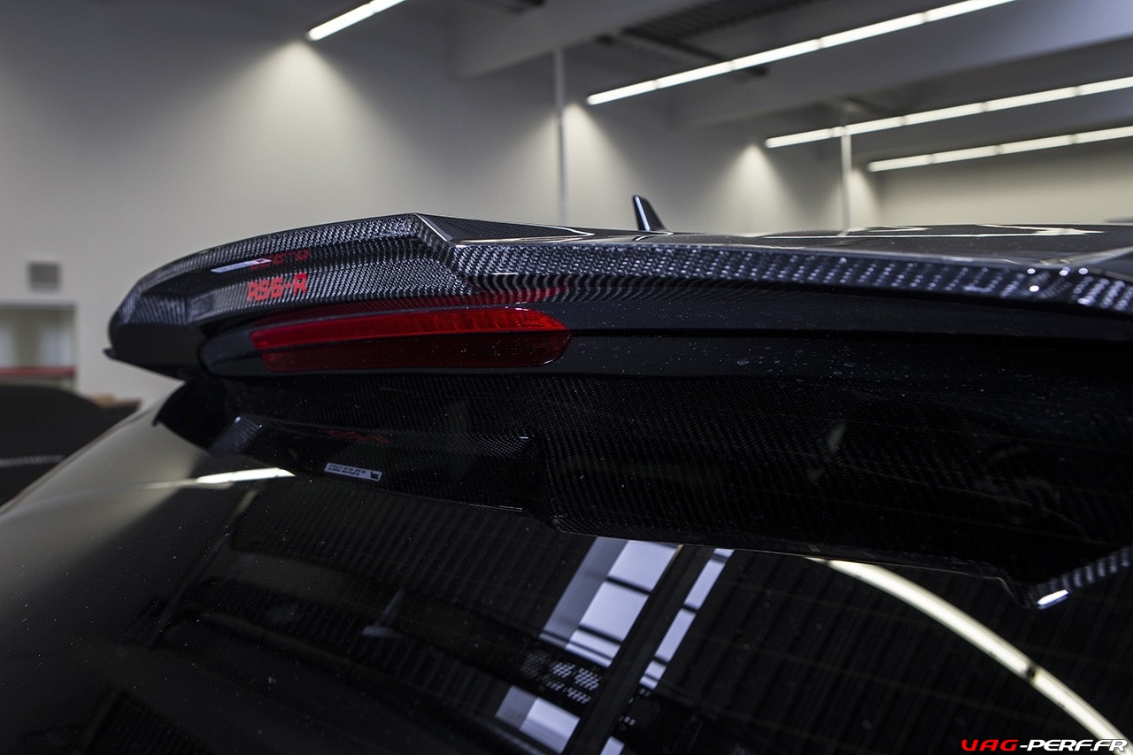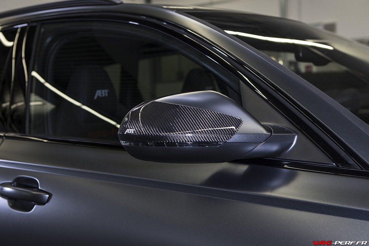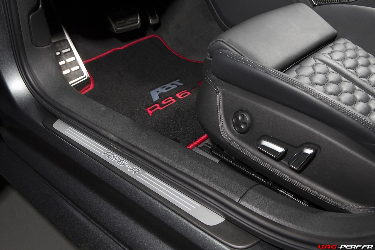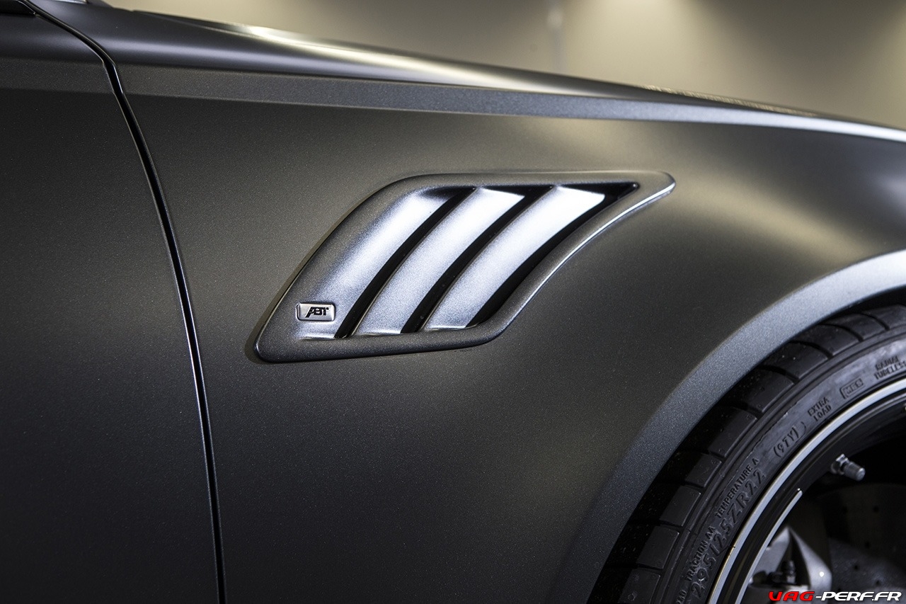 Le Pack ABT Power S pour le moteur de cette RS6-R, améliore les performances du V8 de 560cv à 730cv! Pour arriver à de tels chiffres ABT installe un système d’échappement en acier inoxydable spécialement adapté avec deux tubes d’échappement jumeaux, ce qui garantit un son phénoménal et un look encore plus attrayant. Coté look, le pack contient aussi des pièces en fibres de carbone comme les coques de rétro, spoilers avant et arrières, les entrée d’air sur le capot avant, des évents sur les bas de caisse … ABT propose même des inserts de garde-boue et un spoiler arrière style DTM.
