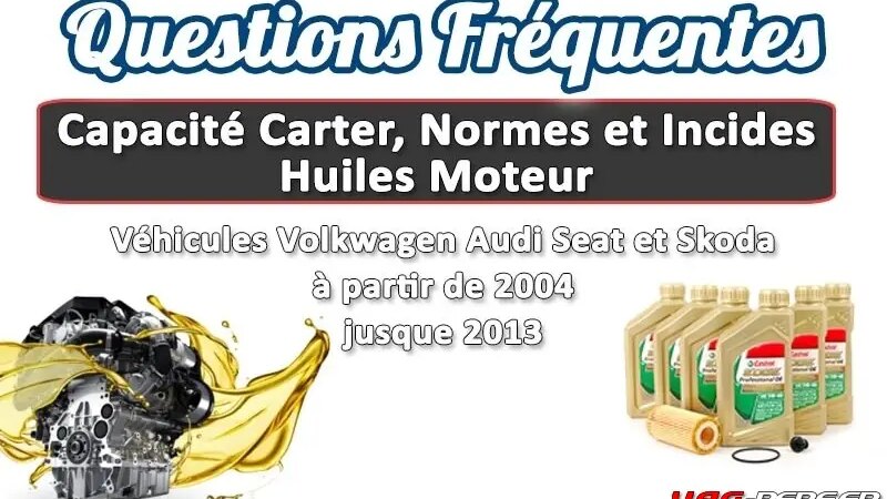 Normes et Capacités d’Huile Moteur sur la VW Golf MK5/6, AUDI A3 8P, SEAT Leon, SKODA Octavia